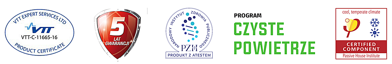 Urządzenie zostało wyposażone w wentylatory o stałym przepływie, które automatycznie równoważą ciśnienie powietrza – idealne rozwiązanie dla domów jednorodzinnych i budynków wielopiętrowych.